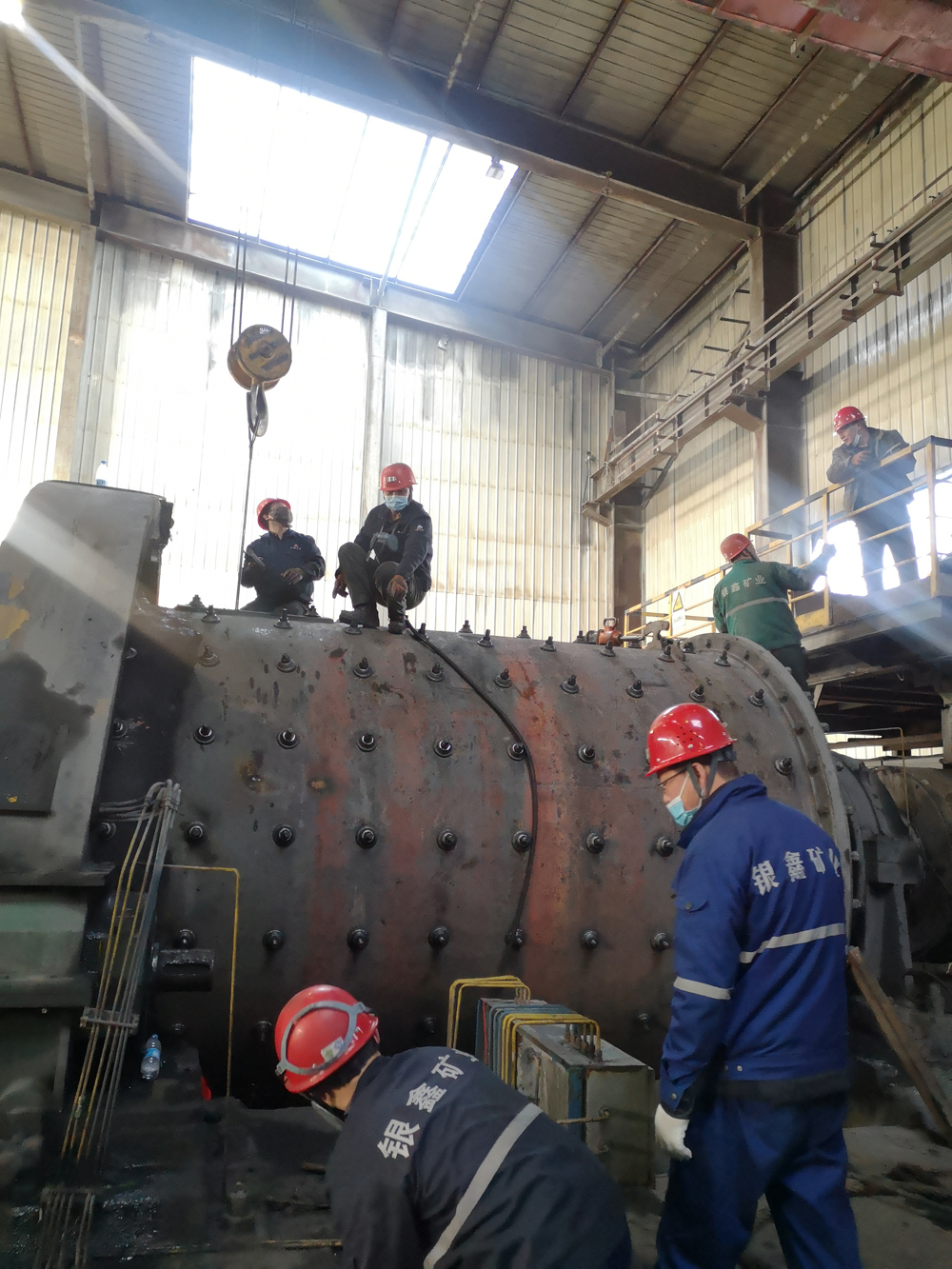 26日上午8時,開始對9號球磨機進行停機倒鋼球作業(yè),相繼開始了一系列的拆裝工作。開始用行車自動模式進行倒鋼球和拆卸作業(yè),隨著裝襯板難度和危險系數的增大,后期行車采用人工手動模式作業(yè),通過這種倒行車的辦法,大大提高了工作效率,保證了作業(yè)的精準和人員的安全。經過65個小時的連續(xù)奮戰(zhàn),9號球磨機于3月1日凌晨1:25開機運轉。