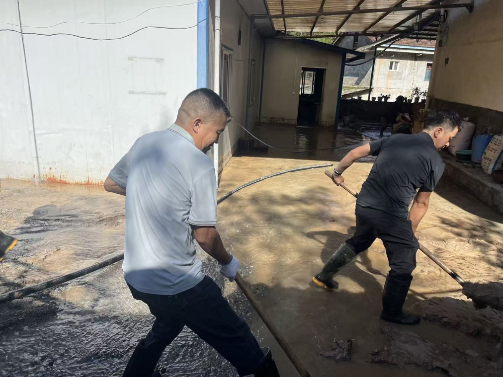 在組織自救的同時,公司黨委心系周邊群眾,迅速組建“黨員志愿服務(wù)隊(duì)”,奔赴受災(zāi)農(nóng)戶家中開展幫扶。志愿者們幫助農(nóng)戶清理院落內(nèi)的積水和淤泥,并耐心安撫農(nóng)戶情緒,詳細(xì)了解他們的需求,用暖心服務(wù)為受災(zāi)群眾撐起“保護(hù)傘”。